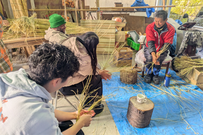We visited the Keihoku area in northern Kyoto on December 14 to deepen our understanding of the SDGs. There, we experienced shimenawa (sacred rope) making, interacted with members of the local community, and toured the Kyoto Satoyama SDGs Lab “KOTOS.”